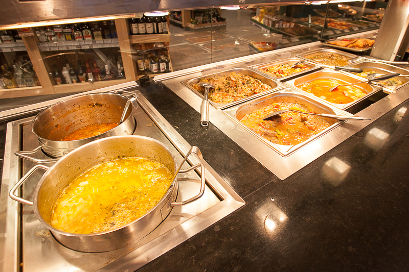 Из-за многочисленности позиций меню разделено по дням недели: приготовить все блюда за один день просто нереально. Впрочем, если вы не нашли любимого блюда на «горячей» витрине «Кнакера», это не значит, что отведать сегодня его не удастся. Его могут приготовить под заказ специально для вас — как в ресторане. При этом переплачивать за сервис не придется — стоимость блюда будет такой же, как и на прилавке. Эта опция распространяется, разумеется, и на салаты.