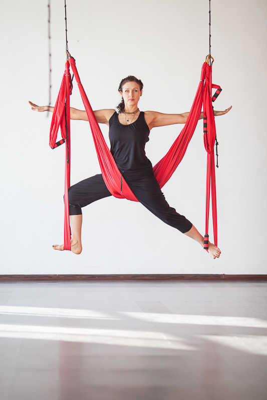 — С одной стороны, выполнять многие упражнения в гамаке гораздо проще, чем на твердой поверхности, — рассказывает тренер по йоге в воздухе Александра Цветкова. — Поэтому в каком-то смысле гамак можно рассматривать как введение в йогу. С другой стороны, надо одновременно еще и держать равновесие, баланс. Это развивает координацию, тренирует вестибулярный аппарат.