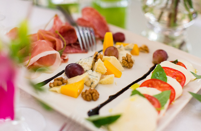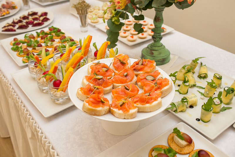 — Банкетное меню мы разрабатывали очень тщательно, — говорит стратегический управляющий компании Людмила Насибьянц. — Исходили как из своего опыта по проведению мероприятий, так и из пожеланий, которые высказывали гости. В результате в это меню вошло большое количество востребованных классических вкусов, которые мы разбавили новыми трендами и подачами: у нас можно заказать и оливье с селедкой под шубой, и, скажем, креветки с манго или карпаччо из гребешков. Как раз из опыта по проведению свадеб родился необычайно широкий ассортимент легких закусок — гости, которые прибыли в ресторан после длительных гуляний и фотосессий, всегда с удовольствием принимает участие в фуршете перед началом основной программы вечера.