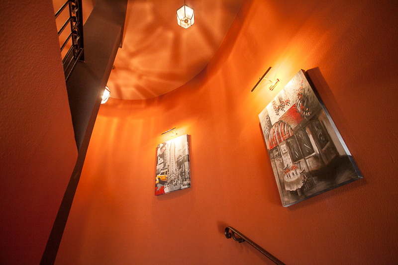Некоторой пикантности интерьеру добавляют стоящие в нишах с красными стенами женские фигуры, отсылающие посетителя к самому, пожалуй, растиражированному образу Амстердама, который происходит из знаменитого квартала «красных фонарей».