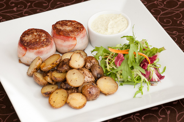 — Еще один хит — ягненок по-кастильски, — рассказывает Александр. — Это классическое испанское блюдо: рубленая мякоть ягненка с травами и специями, которая обжаривается в беконе. Подается с картофелем, обжаренным в розмарине с тимьяном и соусом из пряных трав.