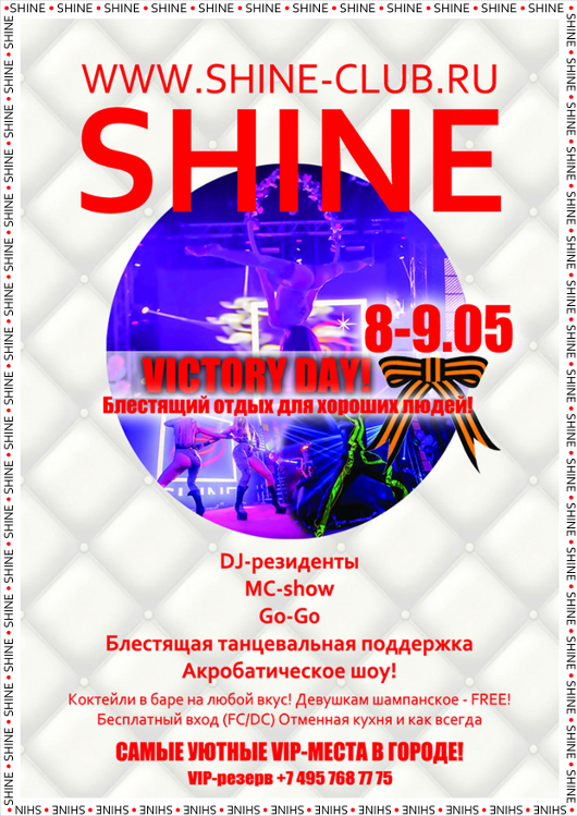 Ресторан Shine 8 и 9 мая организует вечеринку Victory Day в честь Дня Победы.