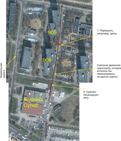 Хочу спросить, возможно ли перекрыть сквозное движение для автотранспорта по дороге идущей от "Копейка-Супер" вдоль домов 908 и 909.Поставить барьер между этими домами. Ведь буквально в 100 метрах за АТС есть полноценная дорога для автомобилей. Получается, что один из трех подъездов к супермаркету приходится на эту сторону и многие машины едут напрямик сквозь дома. Неуютно выходить из дома с детьми, буквально под машины. И еще, может это не по адресу, но тем не менее, возможно ли организовать зону только для пешеходов параллельно автомобильной на том же участке от дома 908 к супермаркету. Сейчас там только для автомобилей подъезд на его стоянку. Очень неудобно лавировать между машинами, да еще когда пол дороги занята сугробами снега. Спасибо. |