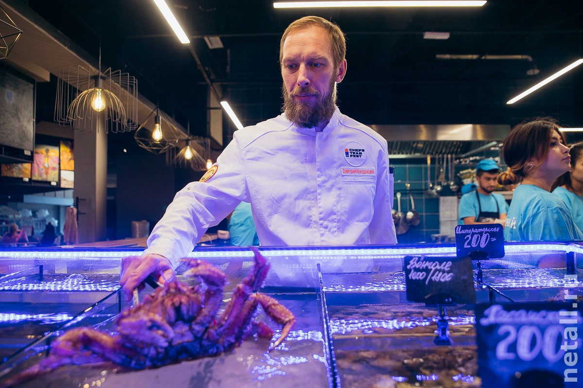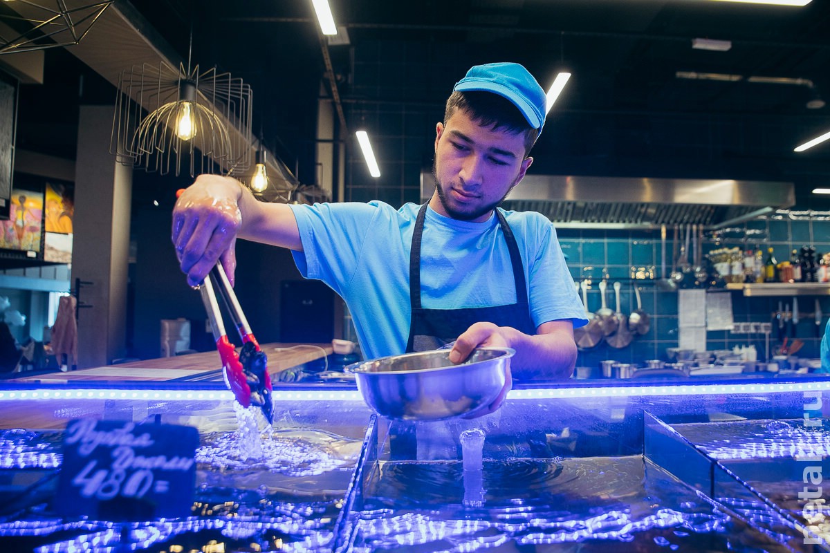— Концепция «Водяного» заключается в том, чтобы предложить нашим гостям максимально свежие морепродукты. У нас полноценная кухня и нет заготовок — мы привозим сюда только продукты, никаких полуфабрикатов, — говорит Григорий Морозов, зеленоградский предприниматель и гастроэнтузиаст и по совместительству арт-директор «Станции». — Этот ресторан я открыл с партнером, который является одним из нескольких поставщиков устриц в Москве. Поэтому у нас ежедневные поставки отборных моллюсков. А все что не продано за день, отправляется обратно.