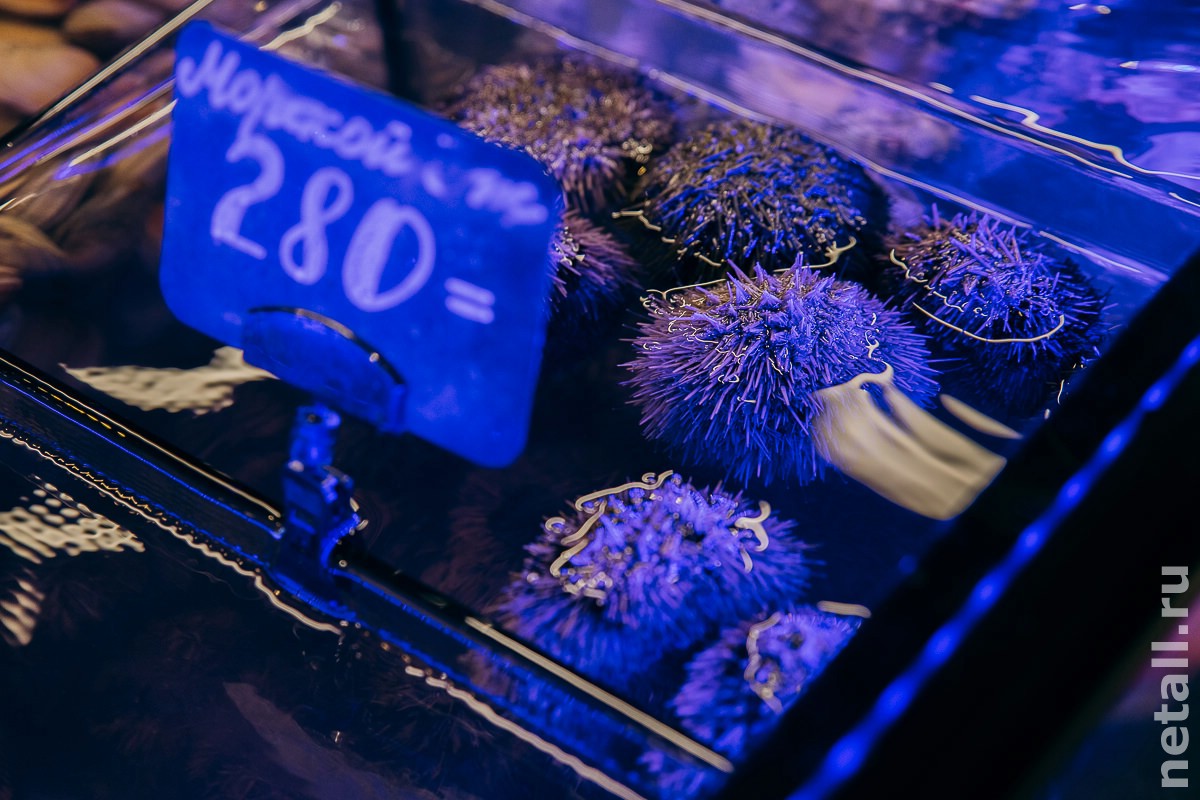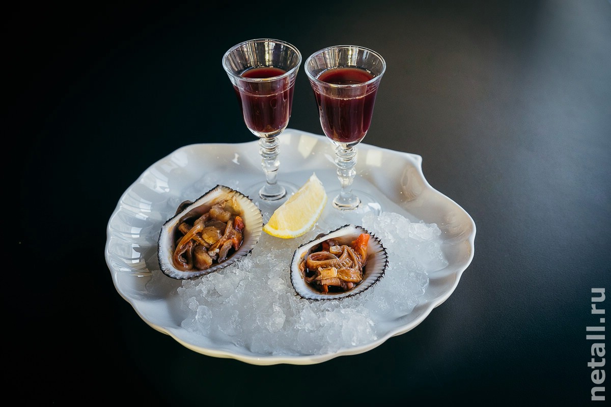 Кстати, устрицы — не самое экзотичное из того, что представлено в меню «Водяного». Как вам икра морского ежа, которая подается в «корпусе» самого моллюска с яичным желтком? «Кладезь йода» и «непредсказуемый для человека вкус» — такие характеристики дает этой закуске Дмитрий Кондрашин. Но, пожалуй, главное гастрономическое приключение, которое можно устроить себе в «Водяном» — это дегустация анадары.