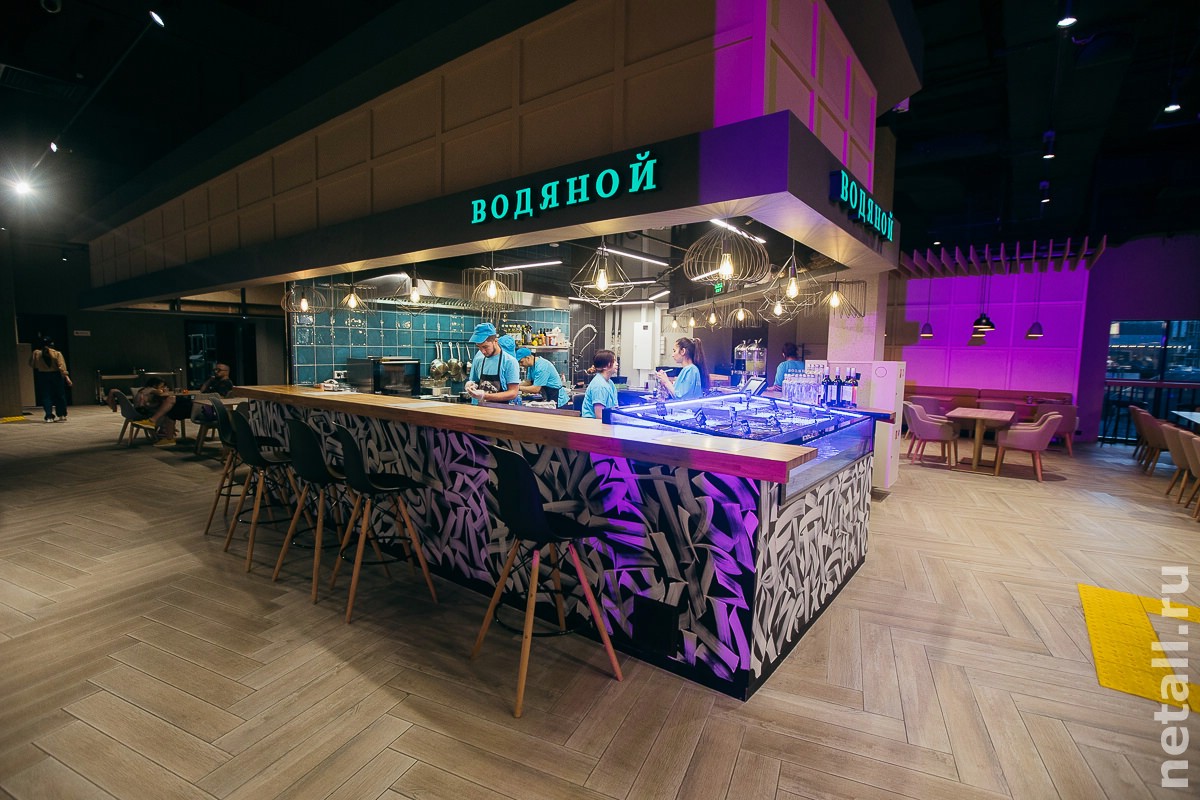 Традиционным дополнением к устрицам считается вино. В «Водяном» предлагают только безалкогольные образцы, но, если вы не приемлете вина «без градуса», на выручку придет магазин Simple Wine, расположенный на первом этаже «Станции» — там с готовностью порекомендуют подходящий напиток. В этом преимущества формата гастрономического центра — можно сочетать блюда и продукты из разных «точек». Да и вообще людям из одной компании необязательно есть одинаковую еду: пока одни «балуются» морепродуктами, другие могут отведать поке, бургеры или, скажем, блюда вьетнамской кухни.