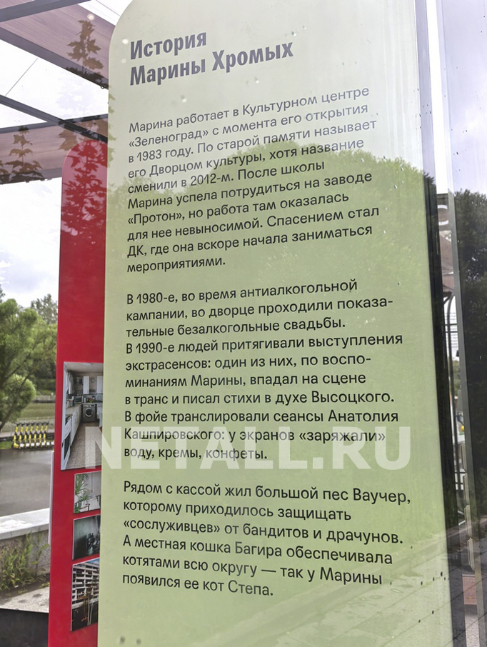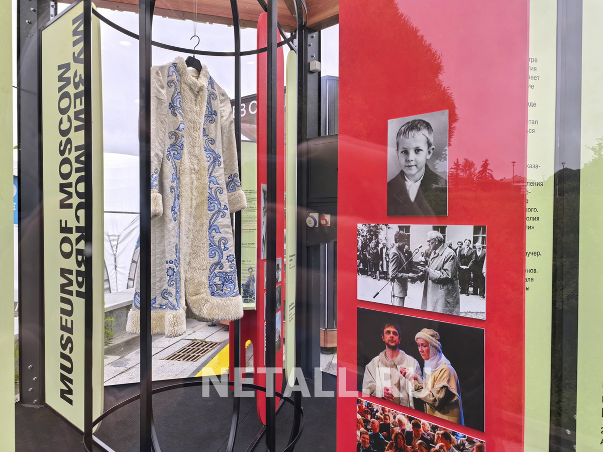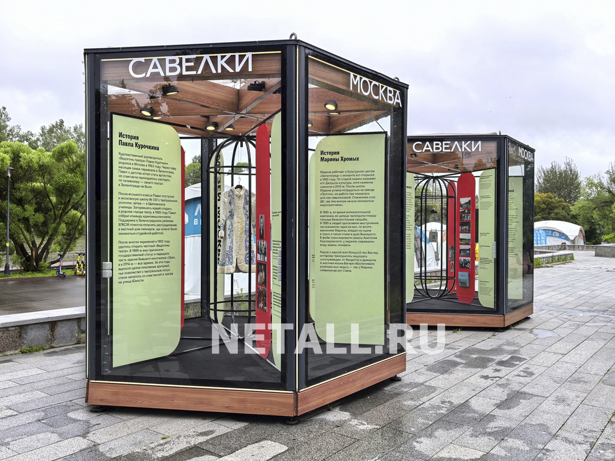 Экспозиция «Москва без окраин. Савелки» разместилась в двух стеклянных стендах-павильонах, установленных у нижней площадки каскада фонтанов в парке Победы, передает корреспондент Инфопортала. Из надписей в витринах следует, что уличная выставка является проектом Музея Москвы, в состав которого входит и Музей Зеленограда.