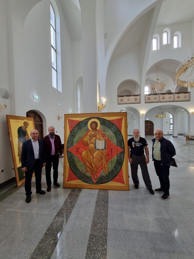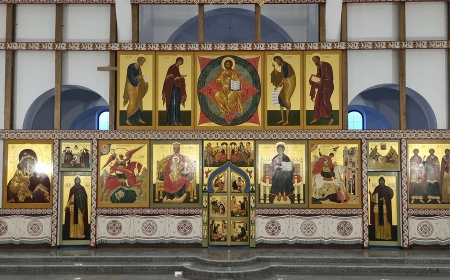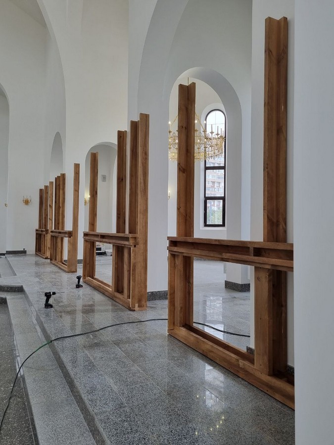 Еще в начале августа в храме началась установка иконостаса. Сейчас эти работы, которые проводит «Московская иконописная мастерская» под руководством Игоря Дрождина, продолжаются.