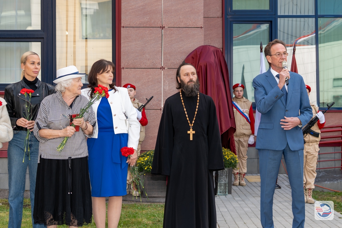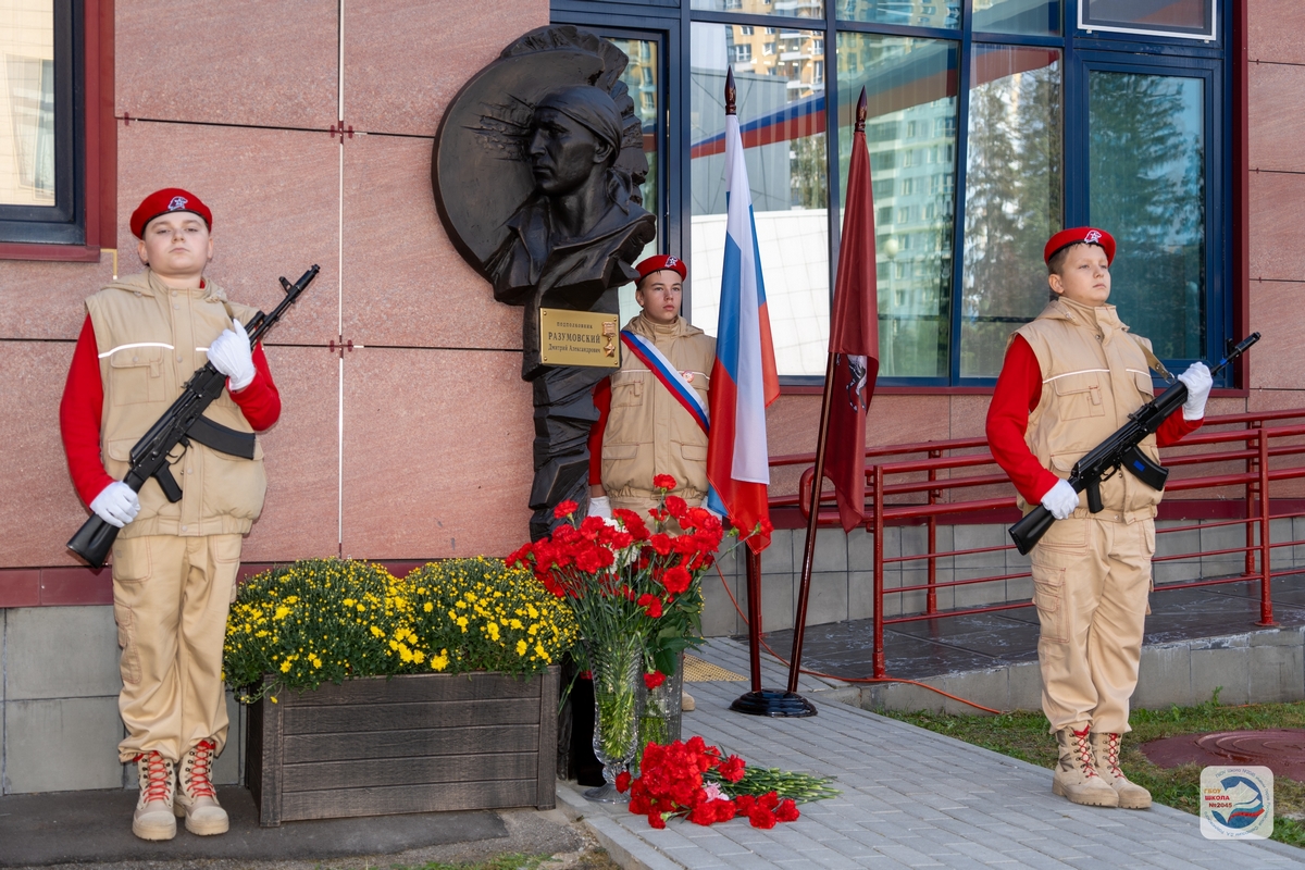 На фасаде школы в 23-м микрорайоне открыли мемориальную доску, посвященную Герою России зеленоградцу Дмитрию Разумовскому, погибшему при освобождении заложников в Беслане.