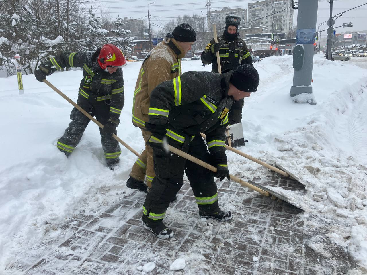 Пожарные вышли на улицы Зеленограда для уборки снега