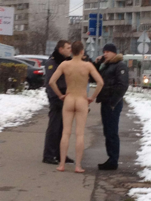 Как минимум дважды за прошедший год зеленоградцы могли наблюдать на улицах города человека, разгуливающего по ним в абсолютно голом виде. Первые фотографии зеленоградского нудиста были в конце весны, когда вечером в будний день он шел по тротуару Центрального проспекта от магазина «1000 мелочей» в сторону префектуры. Затем нудист уселся на газон рядом с лестницей, ведущей к префектуре, где его и «приняли» сотрудники полиции. Встречей с полицейскими закончилась и другая прогулка обнаженного человека, 29 октября, когда на улицах города уже лежал первый снег. В этот раз нудиста засняли на Панфиловском проспекте недалеко от Крюковской площади. Что заставляет мужчину разгуливать по улицам в таком виде (как и то, был ли это один и тот же человек), можно только предполагать.