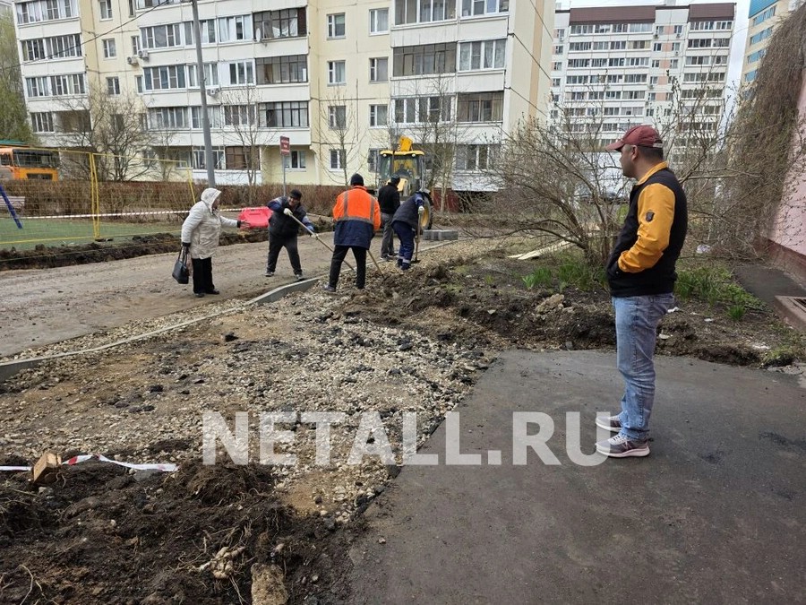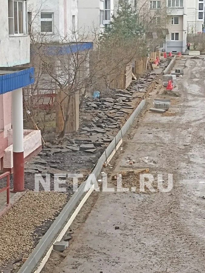 «"Благоустройство" (никому не нужное) во дворе 240 корпуса. Людям из подъездов как выходить? Неужели нельзя какие-то временные настилы предусмотреть?» — написала одна из местных жительниц в районном чате «Жилищника».
