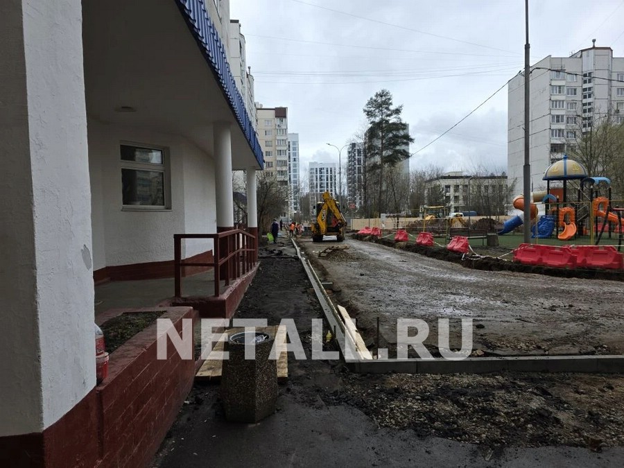Из-за благоустройства, начавшегося у корпуса 240 в Зеленограде, местные жители лишились возможности нормально выходить из подъездов — фотографии.