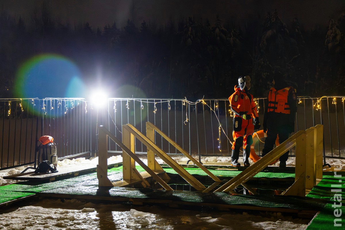 По данным районных управ, около 930 человек погрузились в иордань на Школьном озере и около 690 — на Черном. Еще около 4 тысяч человек пришли к местам проведения купаний в качестве зрителей: больше 2600 наблюдали за мероприятием в 10-м микрорайоне и почти 1450 — в 6-м микрорайоне.