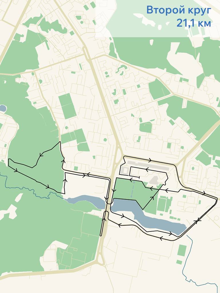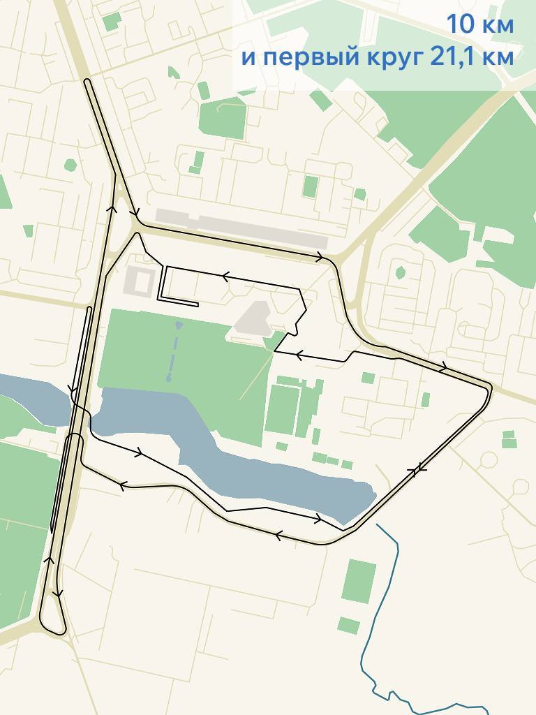Круг рассчитан на 10 километров — именно его предстоит пробежать участникам сопроводительного забега. Полумарафонцы же, преодолев первый круг, вторую часть дистанции побегут по другому маршруту, в значительной части проходящей через лесопарк.