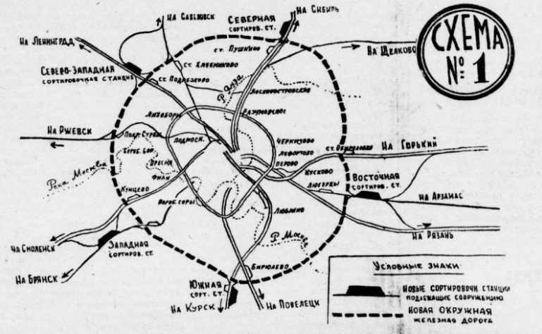 «Для полной разгрузки узла от транзита и облегчения работы Окружной ж. д., которая с социалистической перестройкой города приобретает внутригородское значение, намечено сооружение новой Окружной дороги. Эта дорога запроектирована на расстоянии в 15 км от существующей.