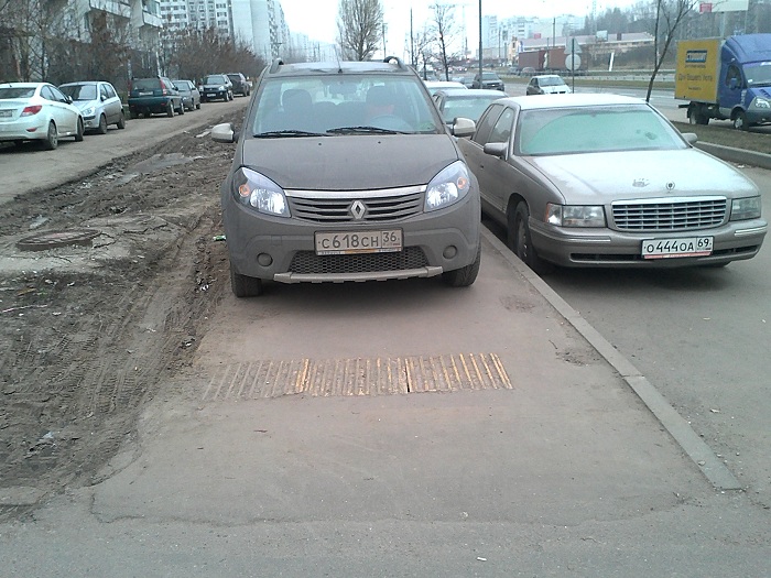Не отставать от homelistening старается и другой постоянный «корреспондент» «Гения парковки» mokshan. Порция фотографий от него. Renault Sandero с номерами С 618 СН 36 RUS у корпуса 1407.