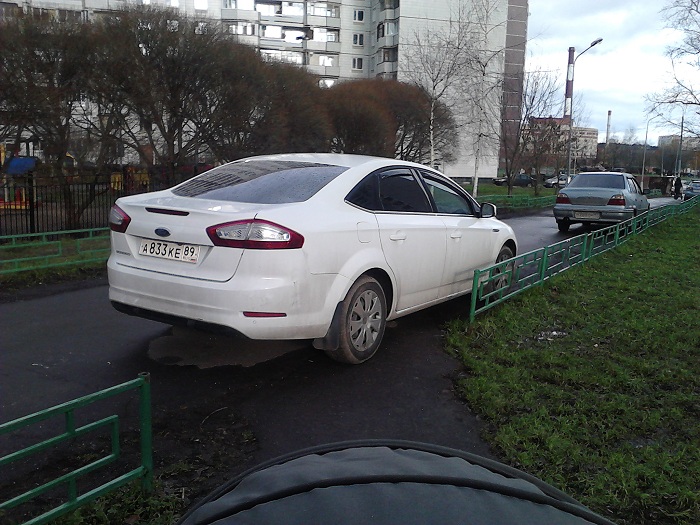 А этот «гений парковки» на Mitsubishi Lancer с номерами Х 328 МК 190 RUS был запечатлен 12 ноября на стоянке у налоговой инспекции пользователем форума Инфопортала Maniak. «Этот индивид(ка) взбесил(а). Встал так, что между ним/ней и бордюром не проехать. Заезжать на бордюр не было никакого желания, так как там и так уже изрядно газон подпортили. Плюс, хоть бордюр и не очень высокий, но земля за ним ниже его уровня, следовательно можно было себе легко повредить днище. Пришлось сдавать задом и ехать в объезд, что и сделала машина передо мной, я, а затем тетенька после меня».