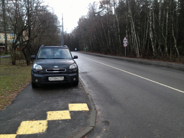 Kia с номерами М 137 ХА 190 RUS 11 ноября на Филаретовской улице около корпуса 1145. «После того, как оставили только одну полосу для движения в сторону Филаретовской церкви парковка на тротуаре – явление не редкое, но, по крайней мере, мимо припаркованных машин можно как-то пройти. Этот же превзошёл всех!» – пишет swtnin.