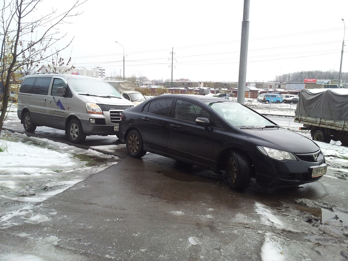 Hyundai Tucson с транзитными номерами ET 994 K 77 RUS, по утверждению meddik, в начале ноября на два дня занял два парковочных места у корпуса 1505. Фотография, конечно, не может свидетельствовать об однозначной вине водителя Hyundai (мало ли, как до этого стояли машины), но наш читатель обращает внимание на никуда не уезжавшую «шестерку» и сухой след от другой машины, стоявшей за «Туксоном», и предоставляет нам целый графический разбор парковочного преступления паркетника.