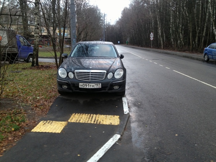 Похожий пример парковки посреди огромного пустого пространства 22 ноября запечатлела kosha619. Mercedes с номерами М 312 ЕС 197 RUS был припаркован на выезде со стоянки у корпуса 432.