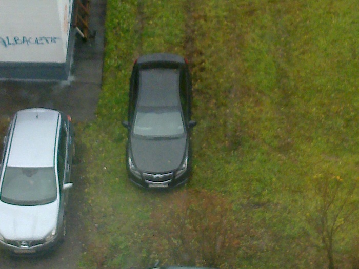 Объявленную в прошлом «Гения парковки» борьбу уничтожению осенних газонов с последующим развозом грязи по двору и всему городу продолжает пользователь форума Инфопортала Gorinich. Он утверждает, что владелец Chevrolet Cruze с номерами М 268 ТК 178 RUS регулярно ставит подобным образом свой авто на газон сзади корпуса 1535.