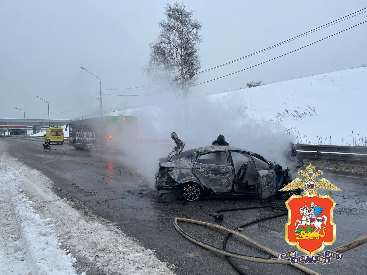 Инцидент произошел сегодня, 15 января, около 8:20, сообщили в подмосковной Госавтоинспекции. По предварительной информации, водитель автомобиля такси марки Kia, следовавший со стороны Ленинградского шоссе в направлении аэропорта «Шереметьево», совершил столкновение с попутным рейсовым автобусом «ЛИАЗ» компании «Мострансавто», после чего легковушка загорелась.