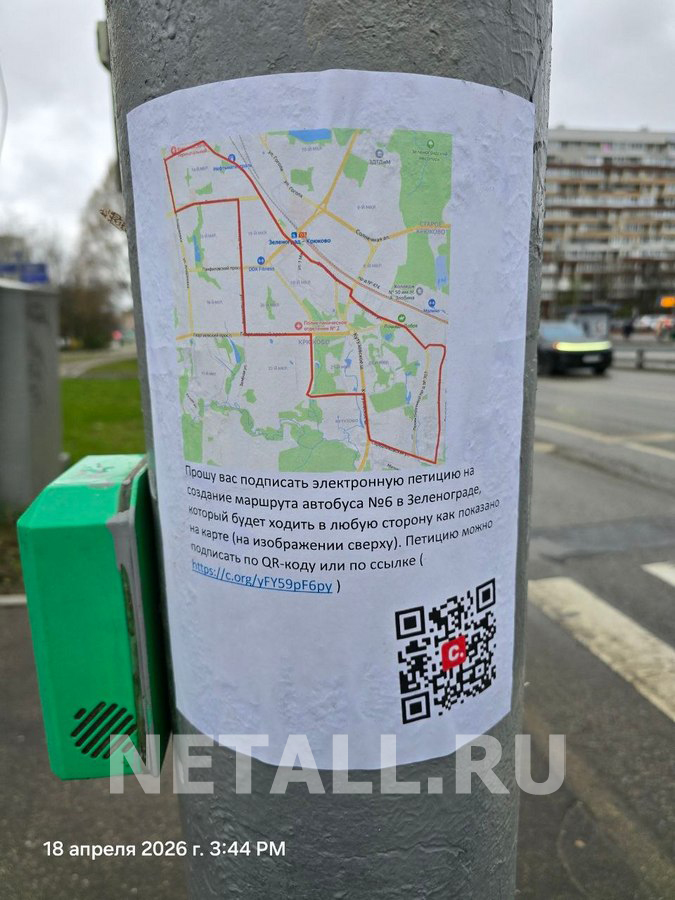 В интернете создана петиция с идеей запуска нового автобусного маршрута в Зеленограде. На улицах города расклеены объявления с агитацией в поддержку инициативы.