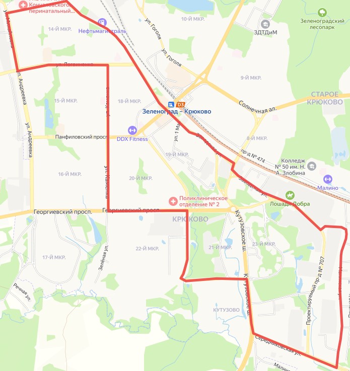 По мнению автора идеи, кольцевой маршрут должен начинаться от остановки «14-й микрорайон» и проходить по улицам Александровка, Новокрюковская, Заводская, Малинская, Середниковская, Кутузовскому шоссе (с заездом в 22-й микрорайон), Георгиевскому проспекту, а также улицам Каменка, Логвиненко и Михайловка. При этом автобусы должны курсировать в обе стороны. Всего на маршруте запланировано около 30 остановок, в том числе 7, через которые сейчас проходит только по одному маршруту.